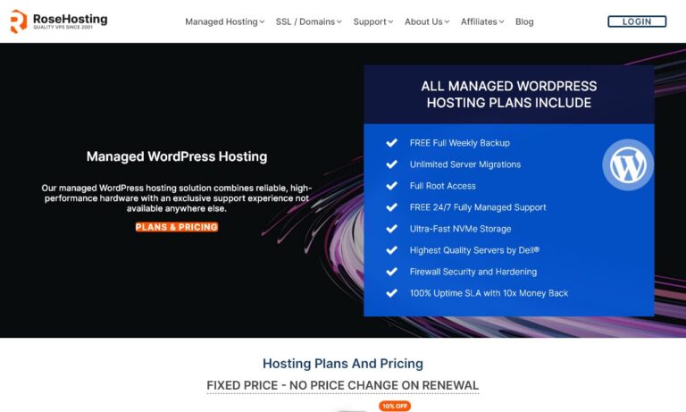 RoseHosting offers fully managed WordPress hosting solutions designed to provide optimal performance, security, and support for WordPress websites. With a 99.99% uptime guarantee and 24/7 expert support, RoseHosting aims to deliver a worry-free hosting experience for WordPress users of all levels.